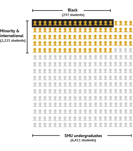 Among SMU’s 6,411 undergraduates this school year, 297 — 4.6 percent — are black. In all, 34.7 percent are minority or foreign students.