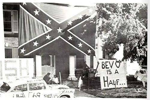That was the last time she saw a Confederate flag hanging from the student union, Sanders said. It didn’t disappear completely, though — as late as 1991, Kappa Alpha members posed for their yearbook photo in front of their house, below a smaller but still prominent Confederate flag.